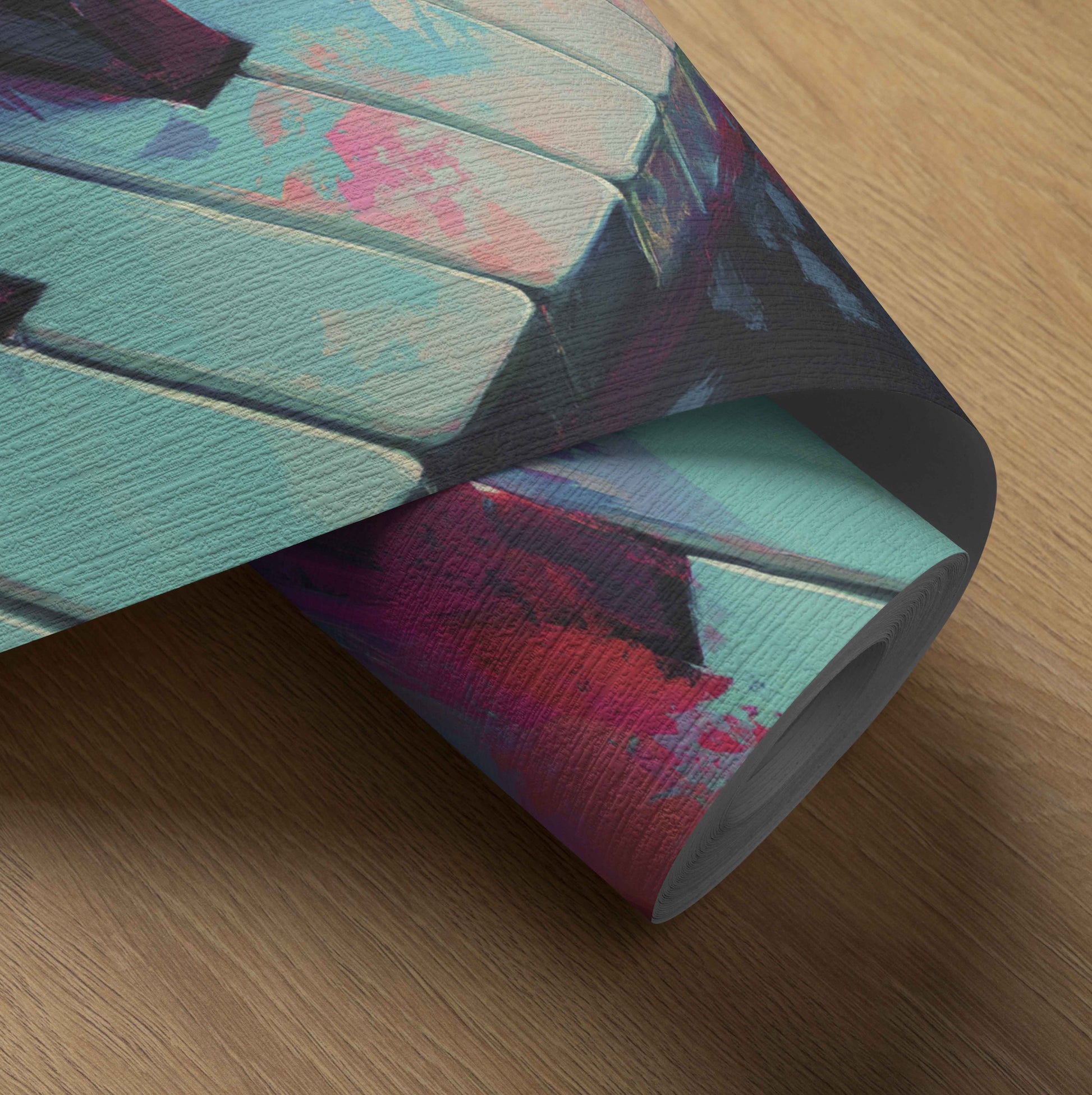 Bring the rhythm of color into your home with this stunning abstract oil painting print of a piano keyboard. This dynamic artwork features a close-up, angled view of piano keys, brought to life with an explosion of vibrant, splattered hues including fuchsia, electric blue, turquoise, orange, and yellow. The thick, expressive impasto brushstrokes give the piece a rich texture and a sense of movement, capturing the energy of music in a visual form. It's a perfect statement piece for music lovers, adding a bold and artistic touch to a living room, music studio, or hallway. This high-quality print faithfully reproduces the vivid colors and textures of the original painting.