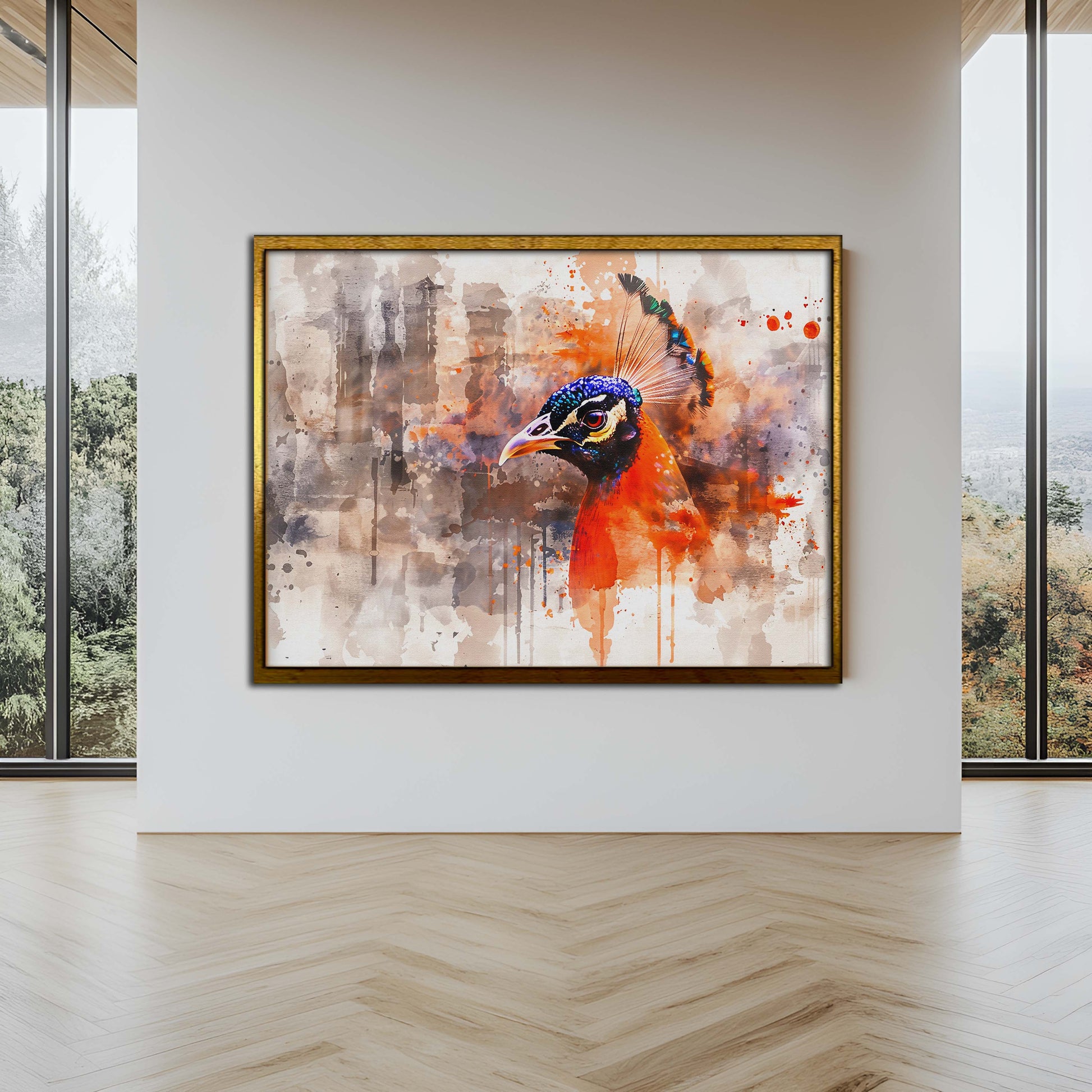 Vibrant Peacock Majesty: Abstract Watercolor Canvas Wall Art